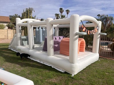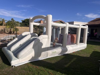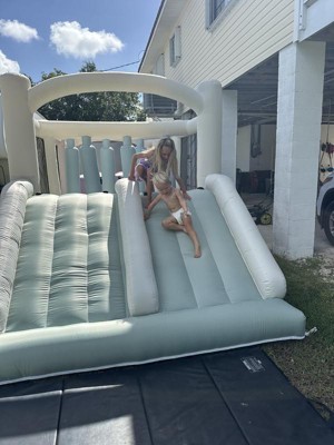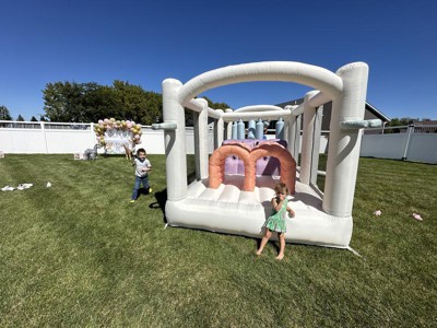 [This review was collected as part of a promotion.] We got this for Christmas last year when it very first came out and have been loving it all year. It's been the favorite present and we use it all the time. It's such a great way to get the kids energy out and let them be as loud, wild, and crazy as they want. One great thing about it is that it's super easy to move around even when it's blown up, you'd think it'd be really heavy but it's not bad at all. We got the sandbags to go with it so once we get it in a good spot, we buckle those on (highly recommend) and then the kids go for it. The sandbags hold it in place perfectly as well. I also love that my kids friends love coming to our house instead of my kids begging to go play at their friends houses. No regrets investing in this amazing (and obviously beautiful) bounce house!