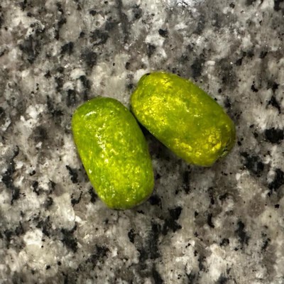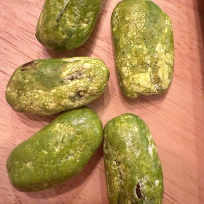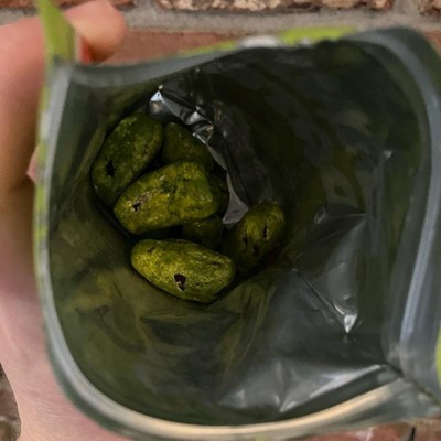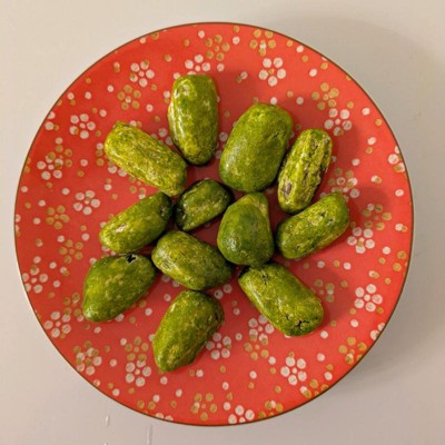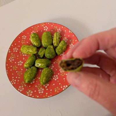 [This review was collected as part of a promotion.] These candied dates were an interesting taste. The flavor was decent, the shell was crunchy, and the inside was chewy. The bright green color threw me off a little. My kids tried one and said they liked it so that was a fun treat for them. The package only has 11 pieces inside which seems too little. However, I think you can only eat a few at a time so they’d last longer than other candy snacks.