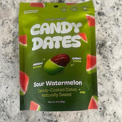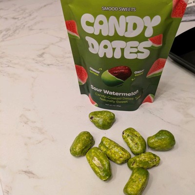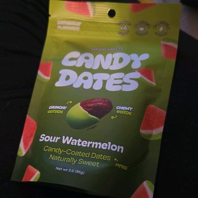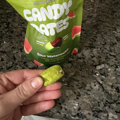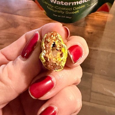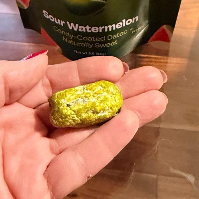 [This review was collected as part of a promotion.] I totally loved these sour watermelon candy coated dates. They are actually so delicious and have that crunchy candy coating on them with the soft date inside. The flavor profile is perfect as it definitely gives you that little sour kick in your mouth and watermelon flavor. These are a new guilty pleasure of mine and I will absolutely buy again!