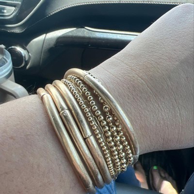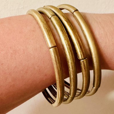 A: The set includes a total of four bangle bracelets.