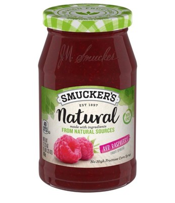 There's no going back to a regular fruit spread after your first bite of Smucker’s Natural Red Raspberry Fruit Spread. Each jar is made with real raspberries for a sweet and flavor the whole family will love. Smucker's Natural Fruit Spreads are Non-GMO (Non-GMO Project Verified) and made with ingredients from natural sources. With no high fructose corn syrup and no artificial flavors, there's no better way to enjoy your favorite fruit spread flavors. Kids' lunches will be easy and convenient with this spoonable spread, whether you make a PB and J or spread it over a breakfast crepe. Explore all the possibilities with Smucker’s Natural Red Raspberry Fruit Spread.