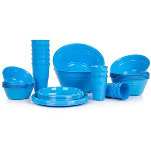 38 Piece Includes: 6 - 21oz Cups 6 - 11oz Cups 6 - 6.5in Round Plates 6 - 8.5in Round Plates 6 Small Bowls - 975ml 6 Medium Bowls - 1.8L 2 Large Bowls - 4L
