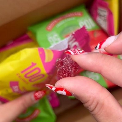 The gummies are 5 stars definitely try them especially if you love sour patch kids and are trying to reduce sugar intake, please if you buy or order online to check the bag first and make sure the gummy is still squishy. I have gotten a few shipped to me that were as hard a rock but the ones from the store were fine. Target was also very helpful in trying to get me different ones but most of those came in and were hard too. Long story short these gummies are well worth it, just inspect it beforehand if possible. They are not as squishy as regular sour patch, they do have resistance, but should not be hard, they also feel smaller/shrunken when they are too hard.