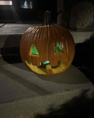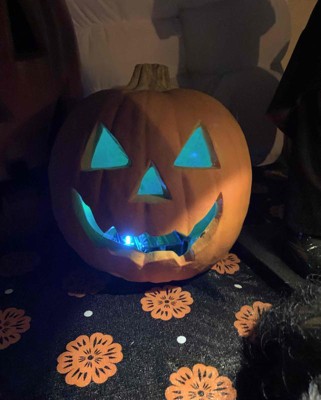 A: Great alternative to traditional candles with a flashing multi-colered LED to light up your carved pumpkins!