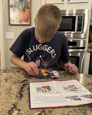 [This review was collected as part of a promotion.] This toy is rated for ages 8 and up, and I think that is a good age range. My 10 year old nephew enjoyed putting it together, and quickly figured out the way it works. It’s fun to see the pieces come together into something real. This is not the clearest sounding radio, and you can’t “tune” it to specific stations, but it is fun to make and have a product that does something at the end. It says 4 projects on the box, but not clear on what that means, until you open it, you can make 4 different items after recycling the same parts (I.e. radio then a kazoo, but not both at the same time). It’s nice that the packaging doubles as the base board for the projects as well. It’s a bit difficult to get the pieces to snap into the board at first, but it works. I received an incentive to write this review.