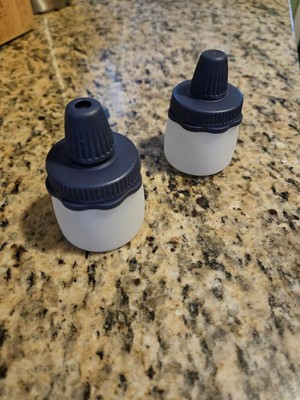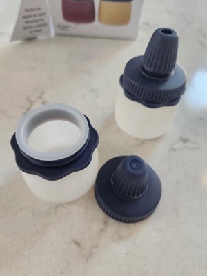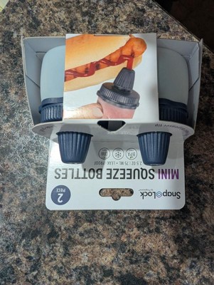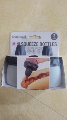 Set of 2 mini condiment bottles from SnapLock. These bottles are great for sauces or salad dressings on the go. Use for your lunches, travel or camping . Features an easy-twist dispenser tip and a wide opening for easy filling. 2.5oz capacity. These mini condiement bottles are BPA free, dishwasher, microwave and freezer safe.
