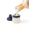 Cute little condiment bottles that are perfect for a picnic or camping. The silicone sides make it easy to squeeze out every last drop and the locking tops ensure that you don't have a mess. The mouth under the caps is wide, making it easy to fill and wash.