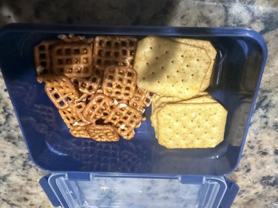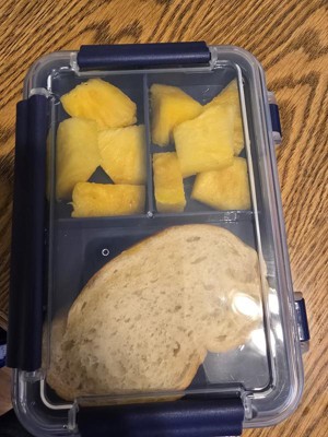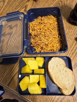 I got this snaplock food storage box for my son for his school lunches. He doesnt always want the hot lunch so sometimes i have to pack one for him. The different compartments are great to keep food separated. Big eniugh for a sandwhich and different fruits and veggies. The snaplock is easy for him to open and close.