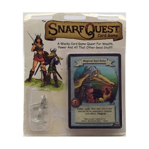 A wild and wacky card game for wealth, power and all that other good stuff! Based on the Snarfquest comic strip by Larry Elmore, this game allows 2 to 8 players to move a Snarf miniature (included with the game) through a "storyline" of cards in his quest to find treasure and become King! This exciting game is fun down to the last card. Available in five colors, with any of five different Snarf miniatures (select Blue, White, Black, Red, or Yellow when ordering). All decks are the same except for border color (this is not a CCG). The different colors allow you to mix decks with your friends, play a game, and separate them out again afterword. The basic set includes 50 cards, one miniature, and the single page of rules.