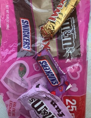 - Contains one (1) 13.63-ounce, 25 count of M&M'S, SNICKERS & TWIX Valentines Candy Milk Chocolate Individually Wrapped Assortment