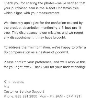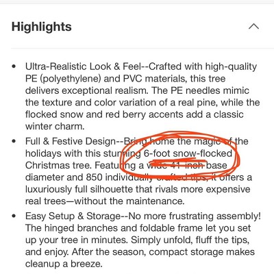 DO NOT BUY THIS TREE! I was under the impression that I was buying a six foot prelit tree. The tree arrived, it’s four feet tall and has no lights! Since it’s a third party seller target can’t do anything about it. The company did an investigation and they’re wanting to send me $5 for my troubles. They’re keeping the money they scammed from me and all I get is $5 and a tiny tree that I don’t even want. If I could give this tree and the customer service ZERO STARS I would.