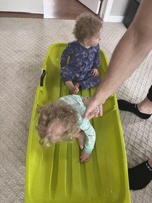 [This review was collected as part of a promotion.] This sled is the best! It was so easy to put together (even for a busy twin toddler Mom). The assembly took about 5 minutes and everything came very well packaged. The directions were very clear and simple to understand. The sled seems sturdy and is large enough for my and my twins to fit on! We can’t wait for some snow to give it a ride down the hill, but in the meantime we are having fun pulling our kids around our living room!