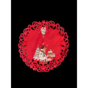 Product Name: Snow Man Embroidered Cutwork Round Placemat, 15-Inch diameter