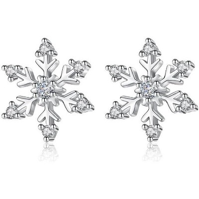 Snowflake Cubic Zirconia Statement Stud Earrings for Women, Silver Tone.