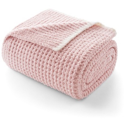 Snuggle Sac Reversible Waffle Knit Throw Blanket Cozy Microfiber Throw