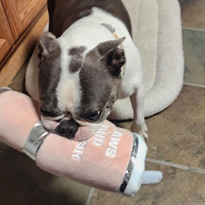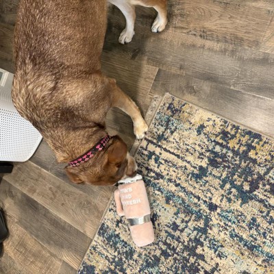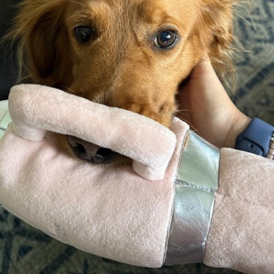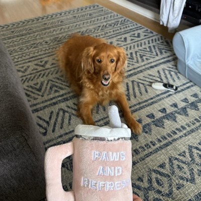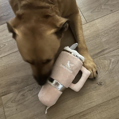 [This review was collected as part of a promotion.] This Snuggly Cup blush dog toy is such a fun and stylish find! The playful embroidered play on Stanley design is absolutely adorable, and the material feels high quality and durable. My pup loves the built-in squeaker and crackle sound—it keeps him entertained and engaged for quite a while. It's perfect for fetch, and snuggling. The handle is perfect for my smaller dog to just to carry around the houseand its entertaining to watch. This was much bigger than I expected so it would be great for large dogs as well. Plus, it’s machine washable, which is a huge bonus for keeping it fresh and clean. I love that it adds a little extra charm to his toy collection while being super functional. Highly recommend for dogs who love snuggly squeaky toys! I received an incentive to write this review.