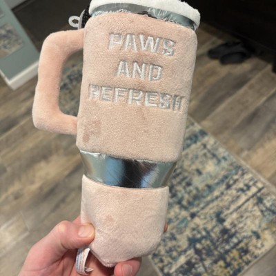 Quench your pup's playtime thirst with our Snuggly Cup, the iconic tumbler! The back proudly reads "Paws and Refresh," offering a delightful twist to the classic cup experience. This plush, squeaky toy ensures your dog stays hydrated with fun, because who says stylish sipping is just for humans? Cheers to tail-wagging refreshment!