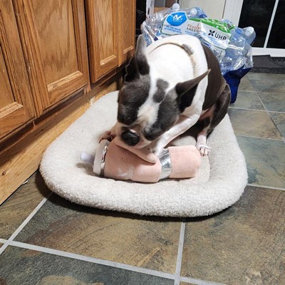 [This review was collected as part of a promotion.] This dog toy is great! It’s a lot bigger than I thought it would be, which is great for my 100 lb dog. He normally tears plush toys apart pretty quickly, but this one he’s just been carrying around. It’s great quality too. There is a squeaker in it, but it’s not one of the super annoying sounding ones (if you have squeaker loving dogs you definitely know what I mean). Definitely something I would gift to my friends pups, too! I received an incentive to write this review.