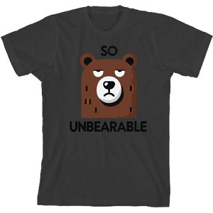 Bring humor to your casual style with this crew neck short sleeve apparel, showcasing a frustrated brown bear surrounded by black text that reads, "So Unbearable." Perfect for adding a playful twist to everyday outfits, this tee is designed to keep you comfortable while making a fun statement. Crafted from high-quality materials, it offers durability and a soft touch. This apparel is easy to care for. Simply machine wash it on cold with like colors and tumble dry on low heat to maintain its look.