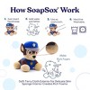 Introducing the SoapSox Chase from Paw Patrol, the perfect bath buddy for your little ones! This plush character brings the excitement of Paw Patrol to the tub, making bath time a thrilling adventure. Chase is not just a playful companion; he's a soft and gentle way to encourage positive hygiene habits. Let your child's imagination soar while embracing the joy of cleanliness. Make every bath a Paw Patrol mission with SoapSox Chase!