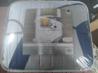 [This review was collected as part of a promotion.] You cannot ask for a better comforter set than this soccer comforter set it is a four piece but the quilt is reversible so if you don't want a white side you could turn it around and it's a blue side everything is perfectly fit extremely soft I highly recommend these for anyone