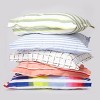Our new Society6 super-soft 100% brushed cotton duvet cover set is crafted from high-quality percale, known for its exceptional softness and strength, and features exclusive mix-and-match designs by independent artists. The tightly woven fabric is both soft and durable, guaranteeing years of use. The duvet cover comes with a bottom button closure and the tailored sham is an envelope-style closure.