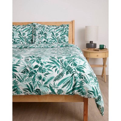 society6 Twin/Twin Extra Long Megan Galante Tropical Palm Green Brushed Cotton Sheet Set Green