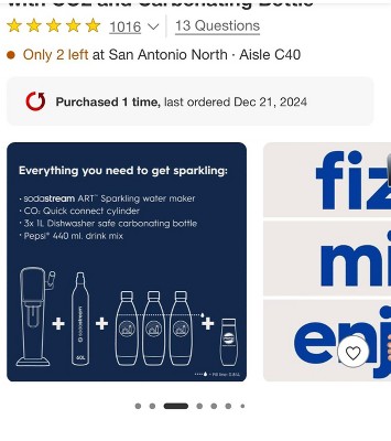 I bought this product while it was a deal of the day. It wasn’t completely a spontaneous purchase. I had been looking at them a few weeks prior as an alternative to all the canned sodas that my family consumes. Not only does soda stream product many of the name brand soda flavors that we have in our home they also had mixer flavors which was pretty exciting! Now the machine. I love the original soda stream but I disliked the awkwardness of the push button on the top of the machine to add carbonation. This art design has a beautifully sleek lever on the side to press for carbonation. It looks so nice and is much easier to use. Not awkward at all. Very natural and easy to use. Love it!! Excited to rebuild my soda stream flavors!!