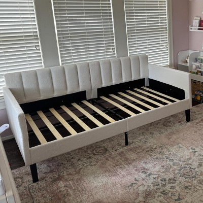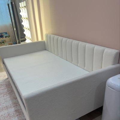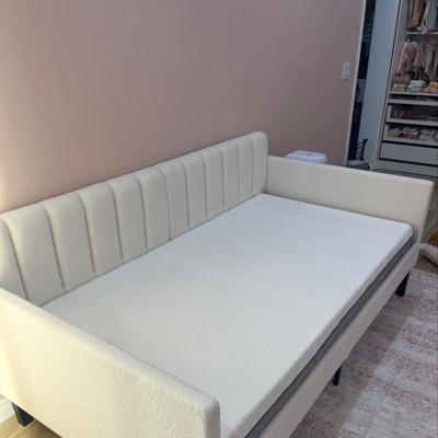Sofa Bed, Day Bed, Twin Size Ivory Boucle Upholstered Daybed, Ribbed Tufted Backrest, Daybed in Lavish Modern Design, Richly Hued Foam Comfort