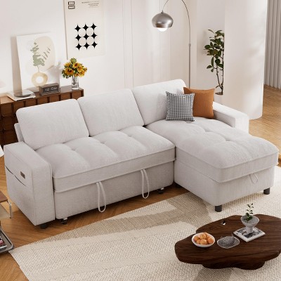 Sofa Couch Modern Convertible with USB Port Storage Ottoman for Living Room 76.38"W - 3irtyhousy