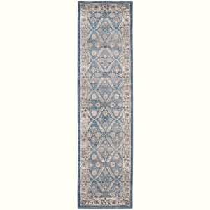 Introducing a stunning addition to your hallway or narrow space. This 2 foot 2 inch by 12 foot runner brings both style and functionality to your decor. In a beautiful blend of blue and beige, its sophisticated traditional style will effortlessly complement any setting. Crafted with precision in Turkey, this runner is power loomed using durable polypropylene, ensuring both comfort and ease of care. With a sleek 3/8 inch height, it offers a streamlined look that smoothly fits under doors. Its understated elegance is perfect for adding a touch of timeless charm to your home. Transform your space with this beautiful runner and enjoy the perfect balance of style and practicality.