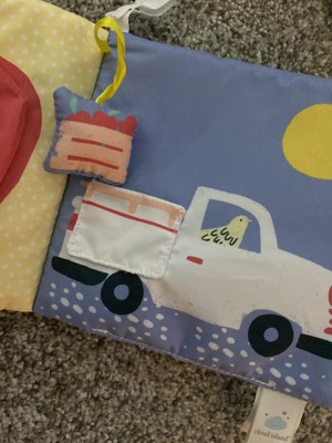 We're loving the cloud island soft books - this one is our favorite, with squeakers on one page, flappy interactive elements on another, a mirror, and a dangling apple crate. All the pages are crinkly and our baby is starting to really enjoy the sounds.