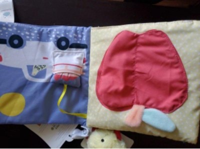 This is such a cute soft baby book! I can't wait to give it to my friends daughter as a gift....the little chick stuffed animal that comes with it is the cutest size for baby hands to grasp and hold onto. The book has fun things to touch inside to keep babies engaged too. There's also a soft button hook so you can hang it onto a baby carrier or stroller. Love it!