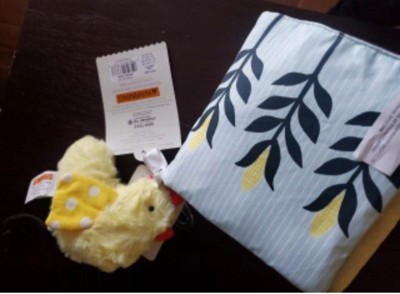 This is a very cute interactive baby book with a plush baby chick included—so adorable! Would be a great baby gift. Fun farm theme to keep baby entertained while teaching about animals, colors, snd shapes.