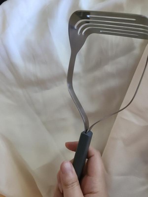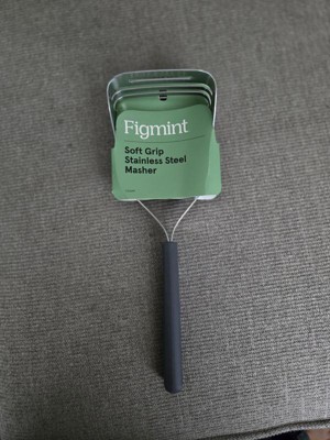Soft Grip Masher Dark Gray - Figmint™: Stainless Steel & Silicone, Hand Wash, Dishwasher-Safe, Potato & Bean Masher