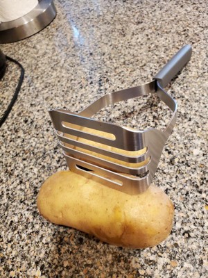 I have been needing a potato masher for awhile and just got this one. Its sturdy and seems well made. Perfect for mashing bananas for banana bread or potatoes. The metal cutouts on the end will also make for interesting textures on top of pies and for arts and craft projectsi do.(all about a mutli purpose tool)