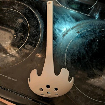 [This review was collected as part of a promotion.] This pasta spoon honestly is so functional and stylish! I love how the handle is comfortable to grip and the shape of it makes it easy to grab longer pasta like spaghetti and pile it on the plate. Genius idea to have drainage holes in it as well. Cute, neutral color definitely goes well in any kitchen.