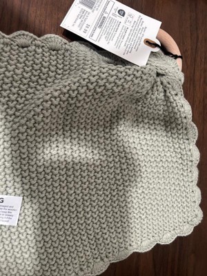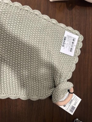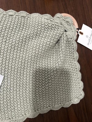 Refresh your little one's nursery with this Soft Knit Baby Security Blanket with Wood Ring from Hearth & Hand™ with Magnolia. Crafted with a sweater-knit design from acrylic-cotton blend fabric, this solid-color baby security blanket is fashioned in a handkerchief style with matching scalloped trim. Perfectly sized for stroller rides and car trips, this blanket also has a brown wood ring at the top that functions as a baby teether.
