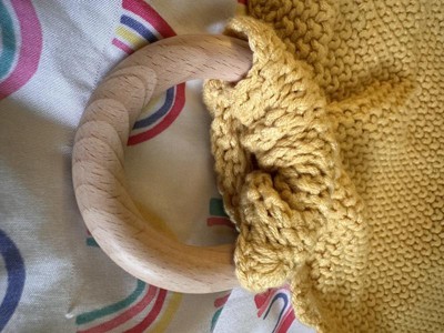 This little lovey is so soft and the wooden circle is very smooth. He is able to easily grip it while I don’t have to worry about rough edges or anything splintering. The blanket portion reminds me of my grandmas little crocheted blankets. It’s very soft and I like how you can remove the wooden ring as well. It has held up in the wash and kept its golden color.