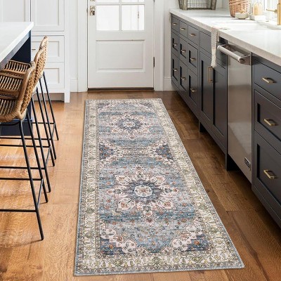 Soft Non-Slip Area Rug: Machine Washable, Low Pile Non Shedding, Solid Border & Floral Farmhouse Design for Home Spaces