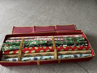 This is the best gift wrap organizer I’ve found. I’m actually getting a second one for my regular gift wrap. It even has pockets for tags, ribbon, etc.