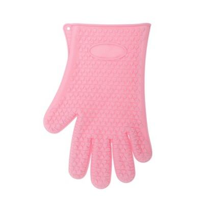 REGALWOVEN Soft Silicone Oven Mitts, Heat Resistant and Waterproof Cooking Gloves, Flexible Gripping for Baking, Kitchen Mitts Set of 2 Pink