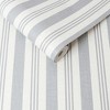 A full roll of this product is 20.5 inches wide and 396 inches long. A full roll can cover up to 56 square feet depending on the design match and pattern repeat. A sample of this product is 8 inches by 11 inches. Bring cool tones to life with the Soft Ticking Stripe wallpaper. Slate grey stripes on a textured cream background add ambiance and depth to your walls. This paper has a glitter effect that provides decadence and drama while still remaining neutral enough for all four walls. Offers a smooth, untextured finish. Free match with no pattern repeat.