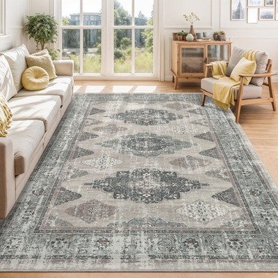 Soft Vintage Distressed Low Pile Washable Large Area Rug for Living Room Bedroom Dining Room, Green Multi, 5'x7': Pet Friendly, High Traffic