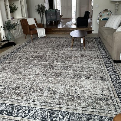 Soft Vintage Floral Large Bedroom Area Rug, Boho Farmhouse Non-Slip Washable Rugs for Living Room Dining Room, Brown/Taupe, 5'x7'