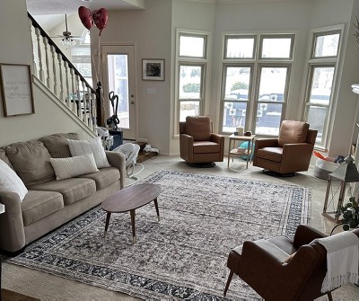 Really pretty rug for a great price. I was looking for something affordable because I have young kids, and making messes is their specialty. This one is nice and soft, easy to spot clean since it’s washable, and even if it doesn’t clean perfectly, it was inexpensive so I knew I wouldn’t care that much. Also lays flat fairly quickly after opening it. Definitely recommend!