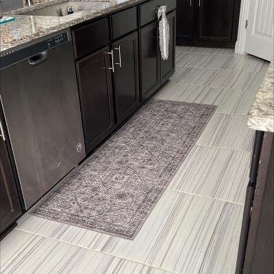 Soft Vintage Low Pile Washable Non-Slip Runner Rug for Hallway Entry Bedroom Kitchen, Beige/Blue, 2'x6'