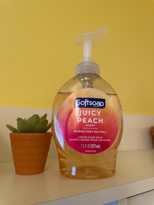 Experience the joy of clean with Softsoap's Juicy Peach liquid hand soap, a fun addition to your sink this season. As the #1 liquid hand soap brand (1), Softsoap delivers an uplifting experience with each use. Whether this soap is used in the kitchen or as a bathroom hand soap, you’ll love that it is infused with a rich fruity scent that keeps hands clean and fresh. This peach hand soap washes away bacteria so you can confidently clean your hands. Proudly formulated without parabens or phthalates, this dermatologist-tested hand soap is dedicated to safety and care, ensuring that each wash retains skin's natural moisture, so you can feel good about washing your hands. Our refill size bottle is perfect for keeping the handwashing experience going, with enough soap to refill six 7.5 fl oz bottles. Let Softsoap's Juicy Peach liquid hand soap infuse a little bit of fun into your daily routine and transform every handwashing moment into a delightful one.