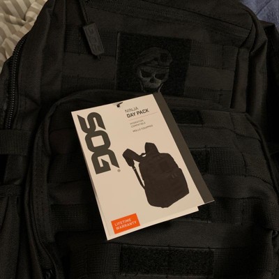 The SOG Ninja Day Pack has everything you need in a tactical backpack and more. This backpack is heavy-duty and made with quality materials. It's lightweight and very durable. The two padded shoulder straps are simple to adjust and sit comfortably upon my shoulders. The adjustable sternum strap helps to disperse the weight of my pack, and keeps the shoulder straps centered. The back of this pack is also padded with thick padding to help keep me comfortable in all the right places, such as my lower back and shoulder blades. This backpack has everything. The large main compartment has lots of room to hold all my main equipment. It has two zippered mesh compartments and an elastic storage pouch. The outside of this pack not only has three other zippered storage compartments, but it has a MOLLE system. This "modular lightweight load-carrying equipment" system has rows of heavy-duty nylon fabric loops stitched onto the backpack. Allowing you to attach multi-tools, knives, magazine pouches, and any other equipment to this tactical backpack. It even has left and right-side hydration hose ports. You can fit most sized water bottles in the side pocket. The zippers all open and close without getting stuck. The material is water resistant and can be spot cleaned if needed. Overall, this is a great backpack for everyday use or for any outdoor activity. These are the only backpacks I use now.