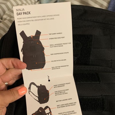 The SOG Ninja Daypack is a cool-looking, versatile daypack that can be used for work or play. This daypack has a large interior with multiple pockets, hydration compatible, drainage holes, and padded lining-excellent for any adventure. The material is high quality, this will last for years.